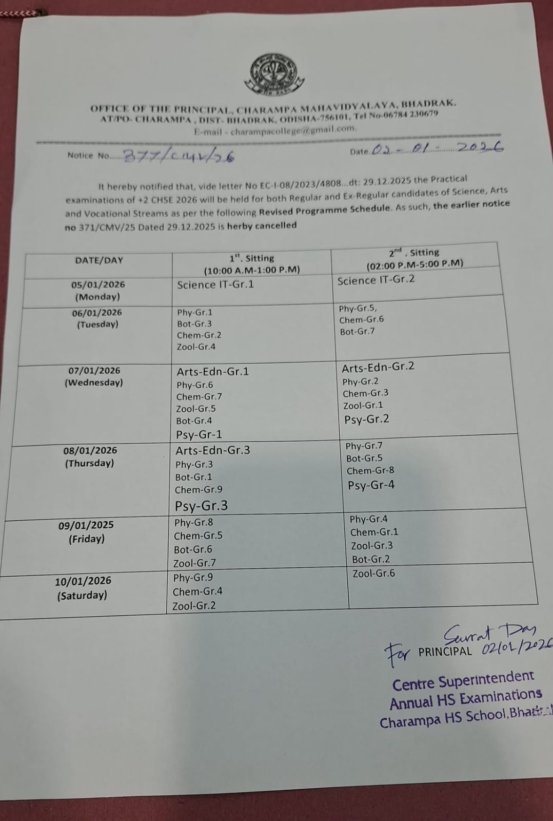 GeneralAll +2 Classes will suspended due to 1st Semester Exam |